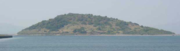 - 出発地点から見た姫島の全景です。こちら側から見ると綺麗に見えますが、上陸してみると流れついたゴミで結構汚です。上陸するたびに少しずつゴミを持ち帰るようにしてるので上陸した際にはゴミを持ち帰りましょう。